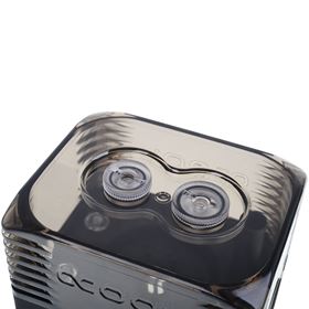A highlight in Eisstation is the materials it consists of. The base has a high quality soft touch surface which gives it an excellent appearance and feel. The upper part and the reservoir itself are not made of simple and fragile plexiglass, but rather of extremely robust nylon. While normal glass or plexiglass reservoirs may crack or break due to falls, even from a small height or due to improper handling, it is almost impossible to damage the clear nylon of the Eisstation.