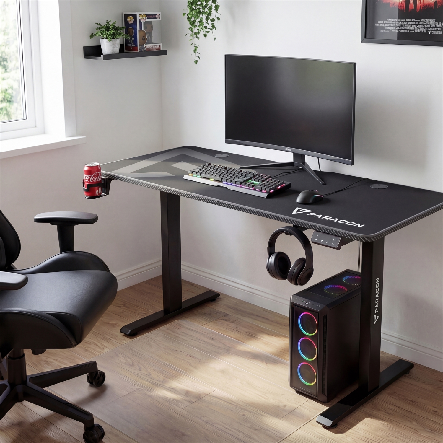 Vill du ha den ultimata gamerstationen med inbyggd dryckeshållare, edge-to-edge-musmatta som täcker upp hela bordskivan och en elektrisk höj- och sänkfunktion? Då ska du satsa på Paracon SPAWN Electric!