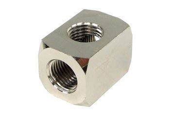 Snygg T-adapter av förnicklad mässing. T-adaptern är med universala gängor, vilket gör att du själv kan välja vilka kopplingar du skall använda!